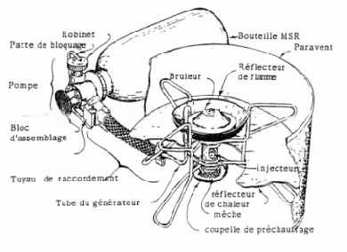 Les réchauds à essence fonctionnent ainsi: on refoule l'essence vers le brûleur