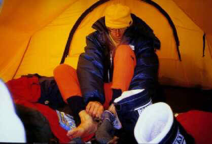 Pour éviter que la transpiration n'envahisse la chaussure, Jean Louis Etienne a