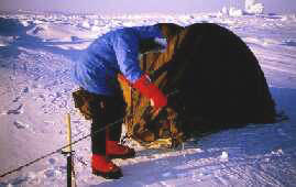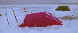 Fixer par deux piquets l'abside au vent (opposée à la porte).