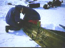 Enfiler les arceaux (une personne placée sous la toile aide au passage dans