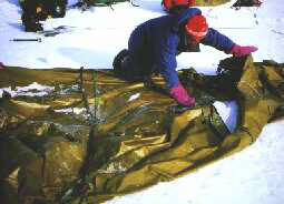 En cas de vent: sortir la tente de son sac au fur et à mesure que vous la fixez